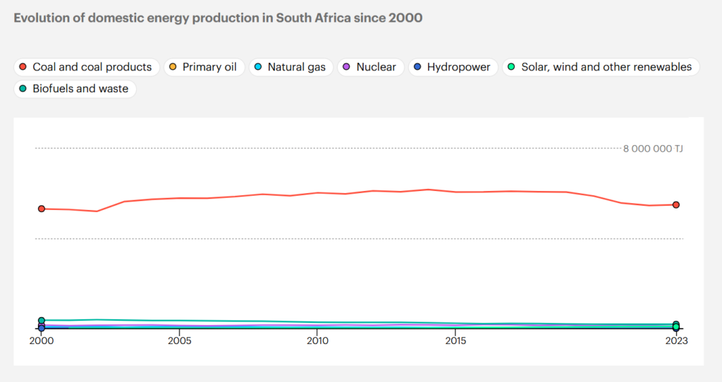 Die „anhaltenden Bemühungen“ Südafrikas, von denen in der Presseerklärung die Rede ist, finden in der Realität so kaum statt. Südafrika belegt beim Anteil erneuerbarer Energien Platz 119 von 147 Ländern im Ranking der Internationalen Energieagentur (IEA). Das Land produziert seinen Strom fast ausschließlich durch die Verstromung von Kohle.