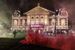 Die Proteste gegen ein Chanukka-Konzert mit Kantor Shai Abramson im Amsterdamer Concertgebouw eskalierten, Rauchbomben wurden gezündet und das Gebäude wurde mit Farbe beschmiert. Insgesamt gab es 22 Festnahmen.