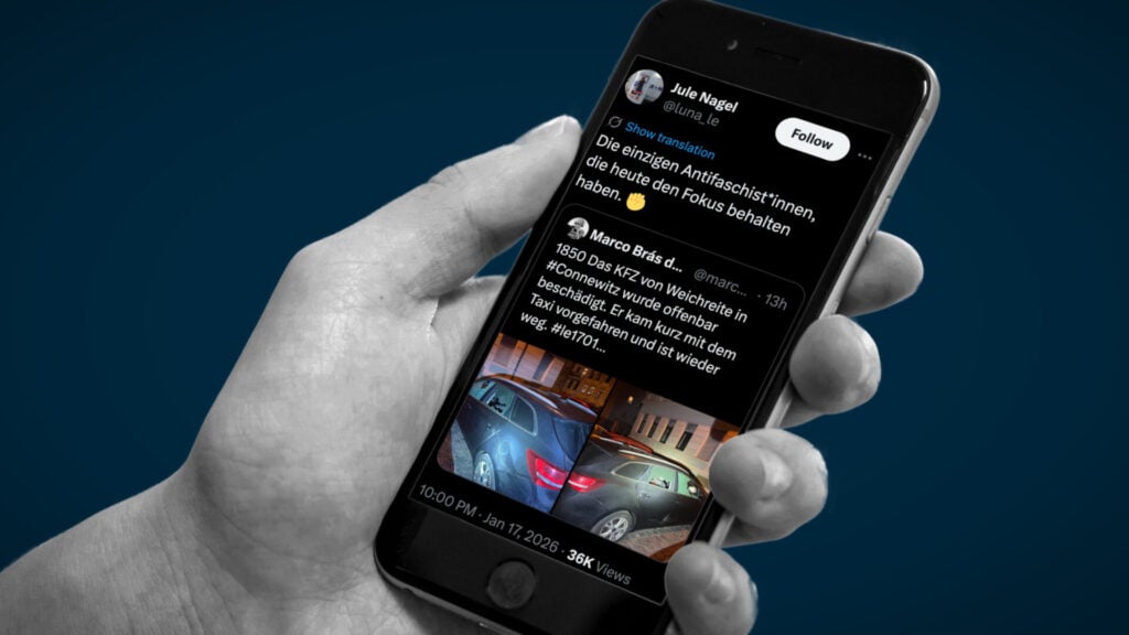 Auf X waren Bilder des beschädigten Autos verbreitet worden. Auf einen dieser Beiträge reagierte die Linken-Politikerin Juliane Nagel dann am Abend mit den Worten: „Die einzigen Antifaschist*innen, die heute den Fokus behalten haben.“ Dazu nutzte sie ein Emoji mit einer nach oben gestreckten Faust. Nagel ist Mitglied des Leipziger Stadtrats sowie des Sächsischen Landtags.