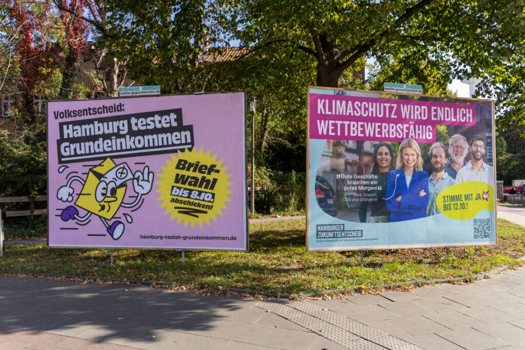 Der Hamburger Zukunftsentscheid verpflichtet die Stadt zur Klimaneutralität bis 2040. Nun wurde bekannt, dass der Volksentscheid zu mehr als der Hälfte von Campact finanziert wurde. Auch der Volksentscheid zum bedingungslosen Grundeinkommen wurde größtenteils von Unternehmen und Organisationen finanziert.
