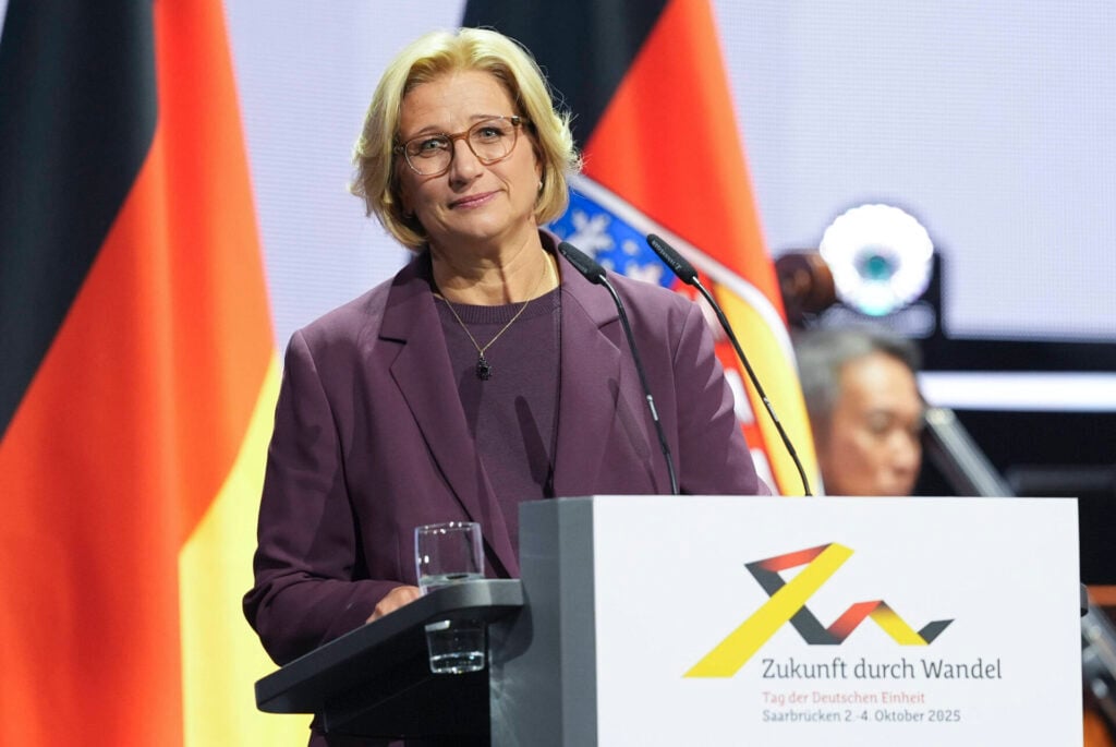 Zum Tag der Deutschen Einheit fordert die saarländische Ministerpräsidentin ein AfD-Verbot: Zum Schutz der Demokratie „müssen im Zweifel auch jegliche Mittel, die die Verfassung bietet, vorbereitet werden“, erklärte sie in ihrer Rede zum Festakt. Sie betonte „Einheit in Vielfalt“.