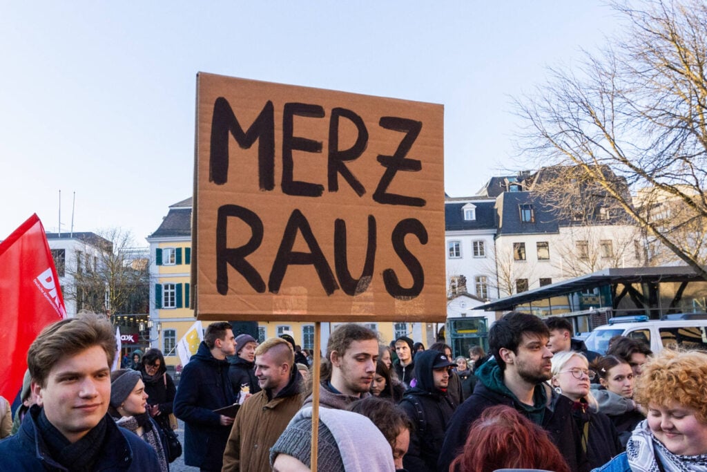 Was meint der er sie es Typ mit dem Schild wohl mit Merz raus ??