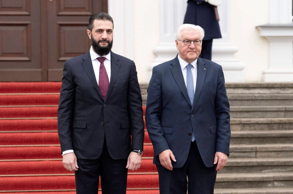 Am Montagvormittag traf al-Scharaa bereits den deutschen Bundespräsidenten Frank-Walter Steinmeier. Bei seinem Besuch in Deutschland soll es unter anderem um den Ausbau bilateraler Beziehungen und die Zusammenarbeit in verschiedenen Bereichen gehen. Auch die Frage der Rückkehr von Syrern in ihre Heimat soll erörtert werden.