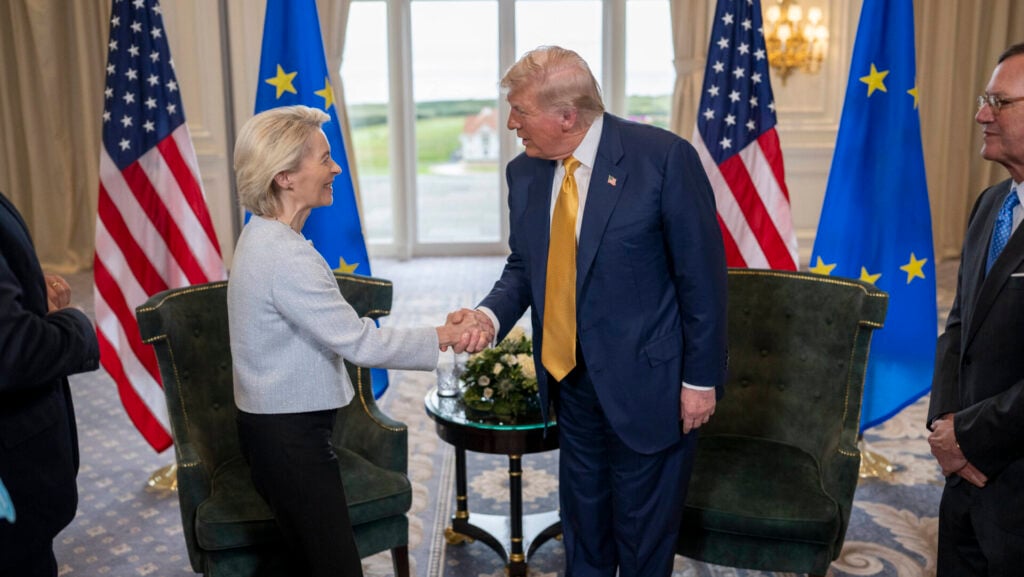 Der Turnberry-Deal wurde im Juli 2025 zwischen EU-Kommissionspräsidentin Ursula von der Leyen und US-Präsident Donald Trump geschlossen – damit wurden erhebliche Strafzölle gegen die EU durch die USA verhindert. Dabei handelte es sich jedoch nur um ein Rahmenabkommen – die konkrete Übereinkunft soll am Donnerstag durch das EU-Parlament ratifiziert werden. Die Parlamentarier haben jedoch, Stand jetzt, Schutzklauseln für die EU eingebaut, die Ausnahmen im Falle neuer Zölle aus den USA vorsehen würden – doch das könnte, wie von Puzder gewarnt wird, zu Problemen führen.