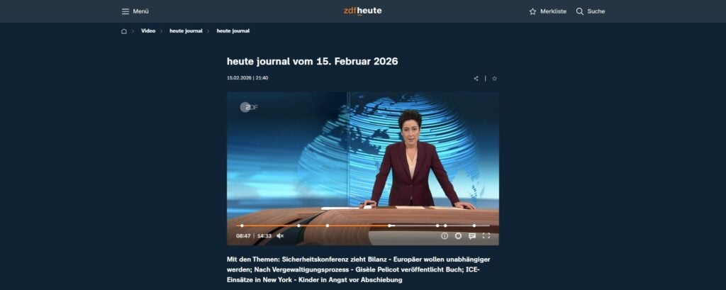 Für einen Anti-ICE-Beitrag nutzte das ZDF im Heute Journal am Sonntag einen Clip, der eine Abschiebung von Eltern vor den Augen ihrer Kinder darstellen sollte. Doch das Video ist KI-generiert. Dabei warnte Hayali noch in der Anmoderation vor gefälschten Bildern.Auftritt bei MSC